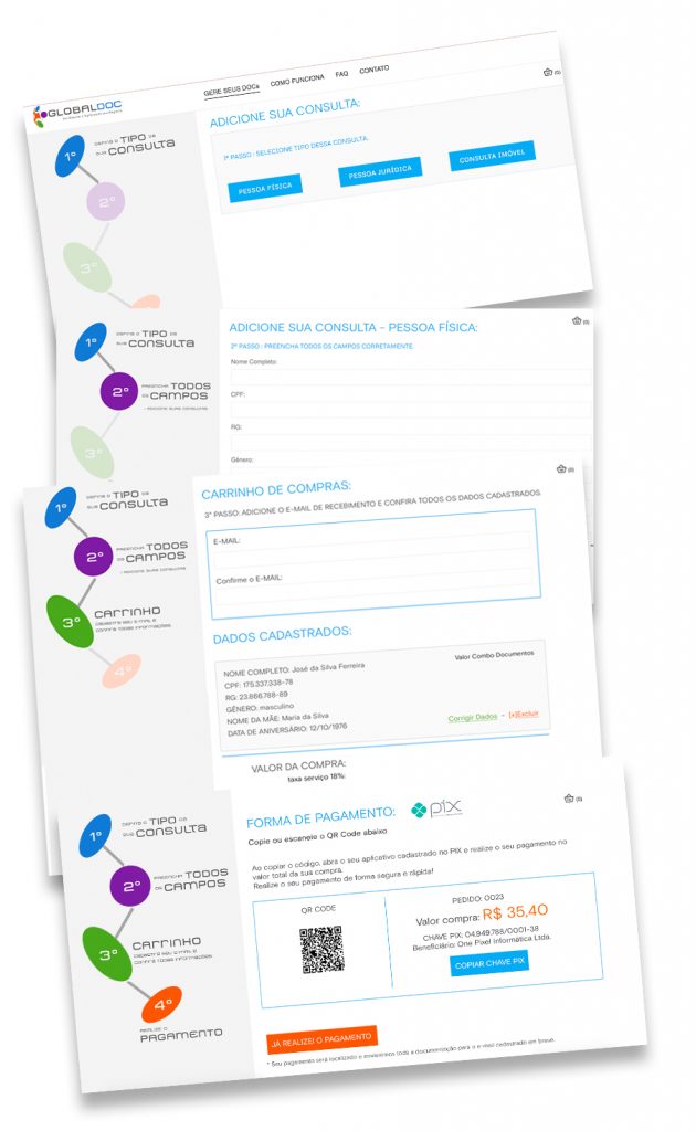 O funcionamento do nosso site está vinculado ao sistema dos órgãos competentes para a emissão de documentos. A GlobalDOC acompanhará automaticamente cada documento emitido e enviará atualizações para o seu e-mail cadastrado até que todos os documentos listados tenham sido emitidos para você.